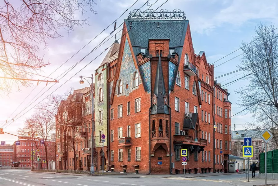 Вы видите дом, построенный в 1907 году по эскизам Сергея Малютина — автора дизайна русской матрешки и иллюстраций к сказкам Пушкина. В Серебрянном веке этот дом обрел славу главного особняка для творческой интеллигенции. А что располагается в нём сейчас?