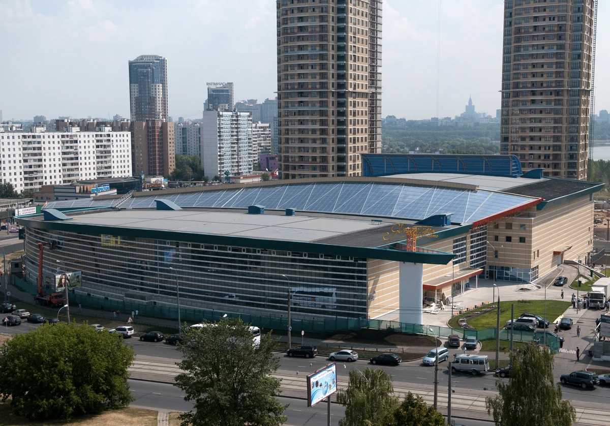 На этой фотографии изображен дворец спорта, расположенный в районе Строгино. Общая площадь сооружения составляет более 34 000 квадратных метров, а в состав дворца входит несколько ледовых арен, два бассейна, спортивный зал, зал для хореографии и многое другое. А какой драгоценный камень фигурирует в название этого дворца спорта?